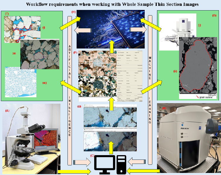 Below is an image from a poster presented by Dr Ricki Walker in 2025 which shows the workflow of scanned images, interpretation and how PETROG fits into the overall workflow >>