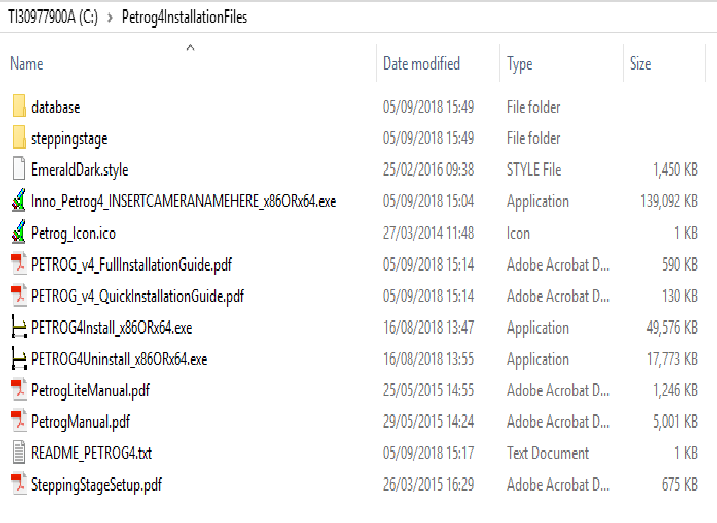 Finally, follow the instructions in the installation guide, which should now be located at e.g. \Petrog4InstallationFiles\Petrog_v4_QuickInstallationGuide.pdf and \Petrog4InstallationFiles\Petrog_v4_FullInstallationGuide.pdf.